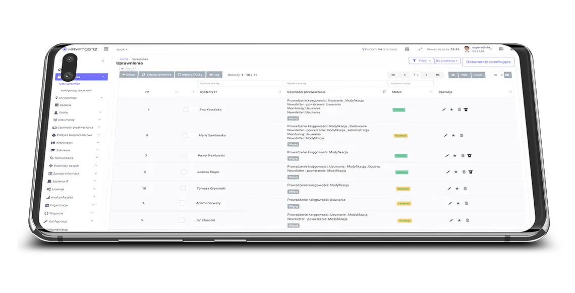 "Dla mnie najważniejsze było tworzenie wniosków o dodanie lub zmianę czynności przetwarzania oraz kompleksowe zarządzanie upoważnieniami. Tylko Kryptos72 umożliwia prowadzenie ewidencji dla wielu typów upoważnień."